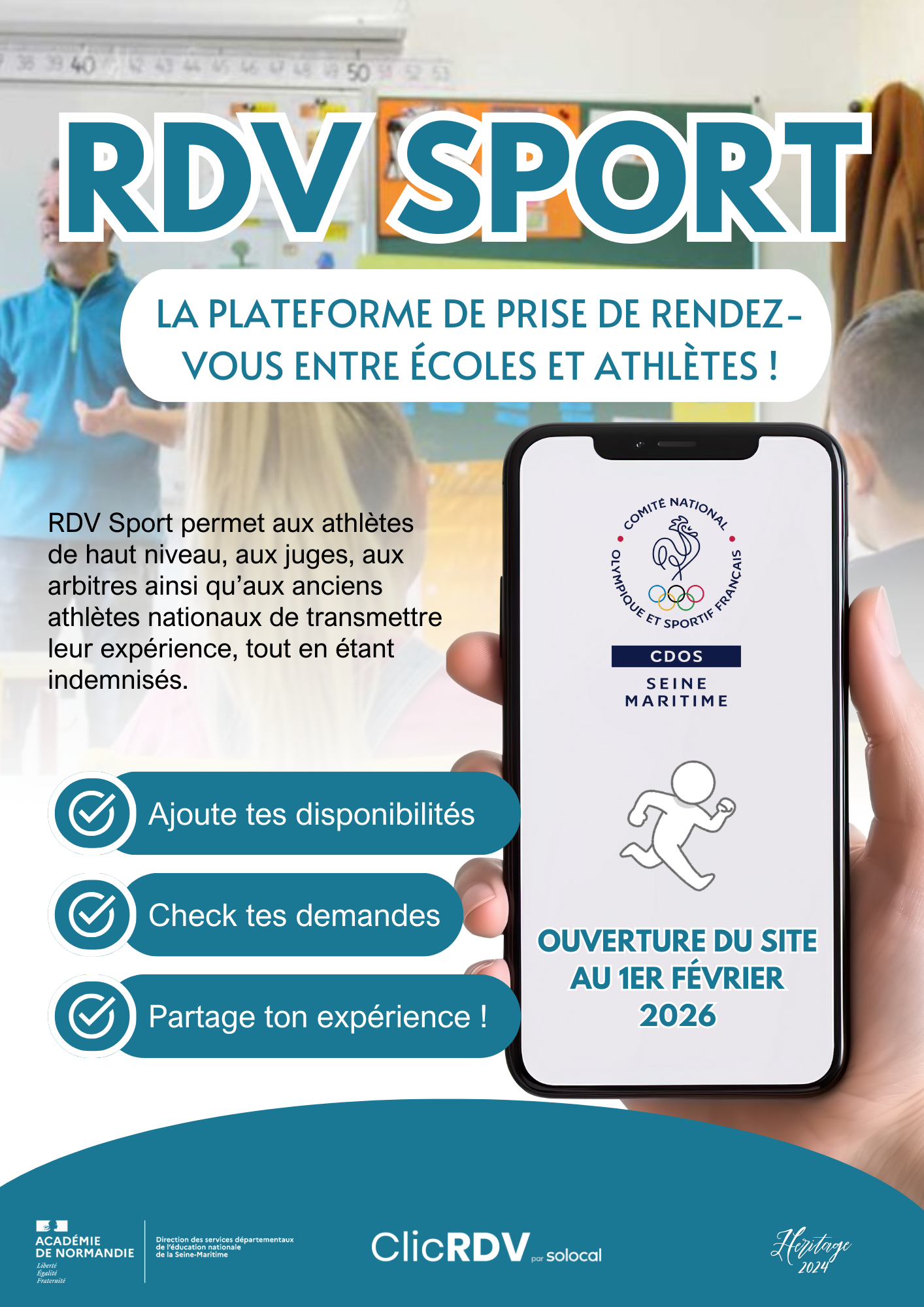 Cette année la plateforme RDV Sport réouvrira ses portes le 1 février 2026 !